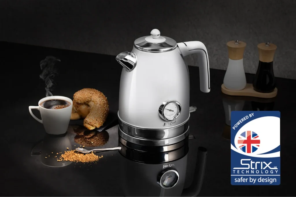 Strix, et britisk selskap, er mest kjent for sin utvikling og produksjon av sikkerhetsmekanismer for små husholdningsapparater. Deres mest fremtredende produkt er termostaten brukt i elektriske vannkokere. Denne termostaten er designet for å slå av vannkokeren automatisk når vannet når kokepunktet eller hvis vannkokeren kjøres med lite eller intet vann, noe som bidrar til å forhindre overoppheting og mulige ulykker. Dette har gjort Strix til en ledende aktør i markedet for sikkerhetsteknologi i husholdningsapparater.